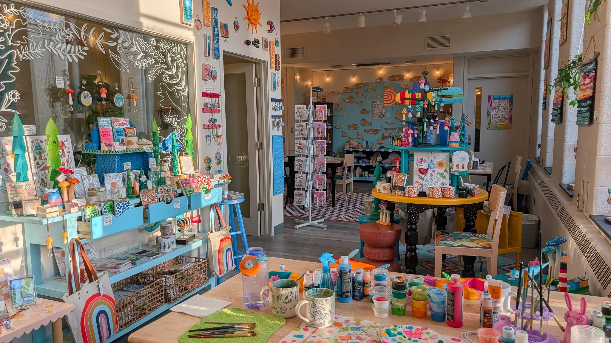 We’re a mother-daughter owned art gallery located in Traverse City, Michigan. All of the artwork and Art Café projects are created by hand, by us! Stop in and browse our cheerful collection - if you feel inspired, grab a table and paint your very own wooden Art Café project.
